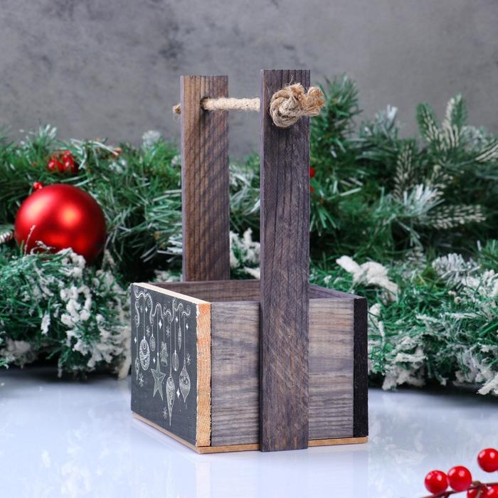 Кашпо деревянное, 15×12×8.5(25) см "Пауль и Любовь. Новогоднее, Новый год", с принтом
