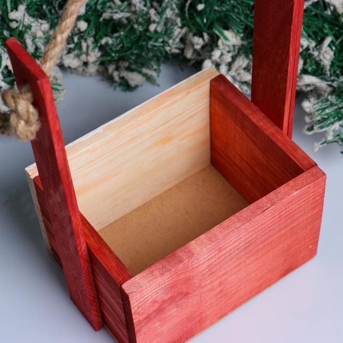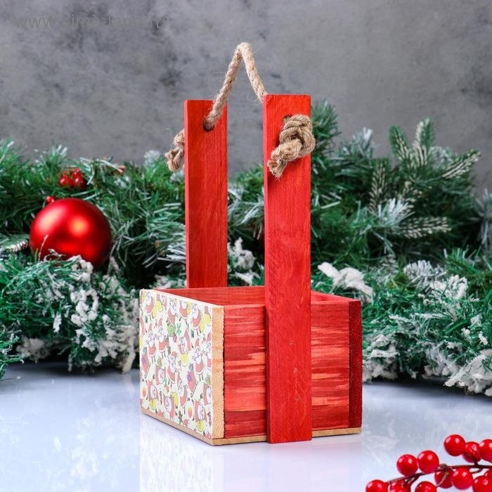Кашпо деревянное, 23×10×14 см "Новогоднее. Санки", подарочная упаковка, белое
