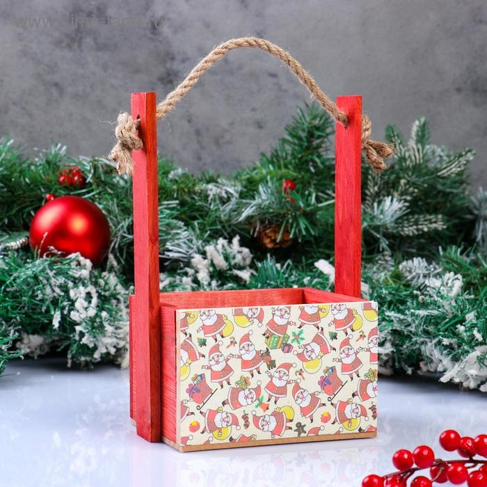 Кашпо деревянное, 15×12×8.5(25) см "Пауль и Любовь. Новогоднее, Деды Морозы", с принтом