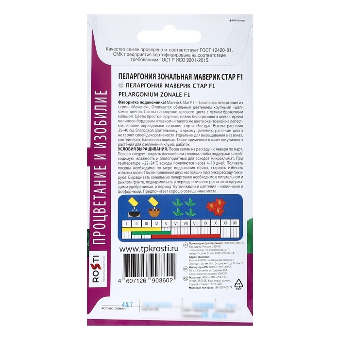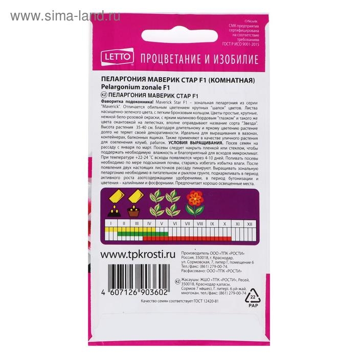 Семена цветов Пеларгония "Маверик Стар", F1, 4 шт