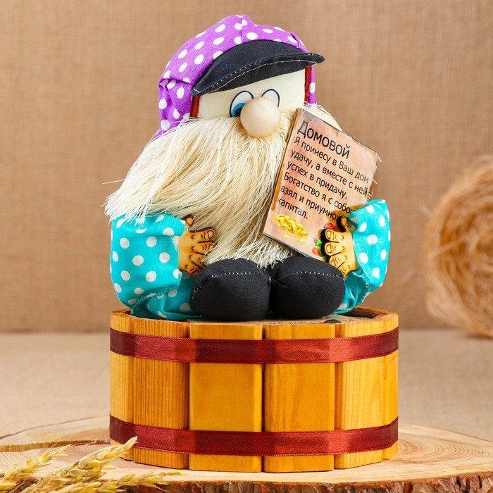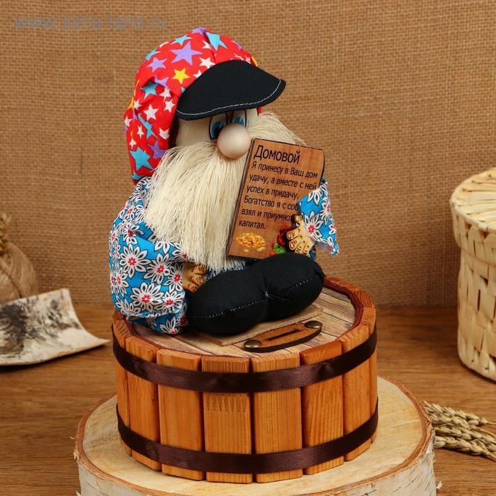 Оберег - домовой "Семён на бочке", h = 25 см, d = 19, микс