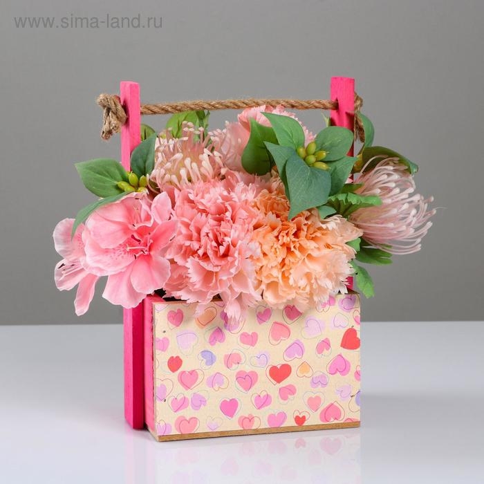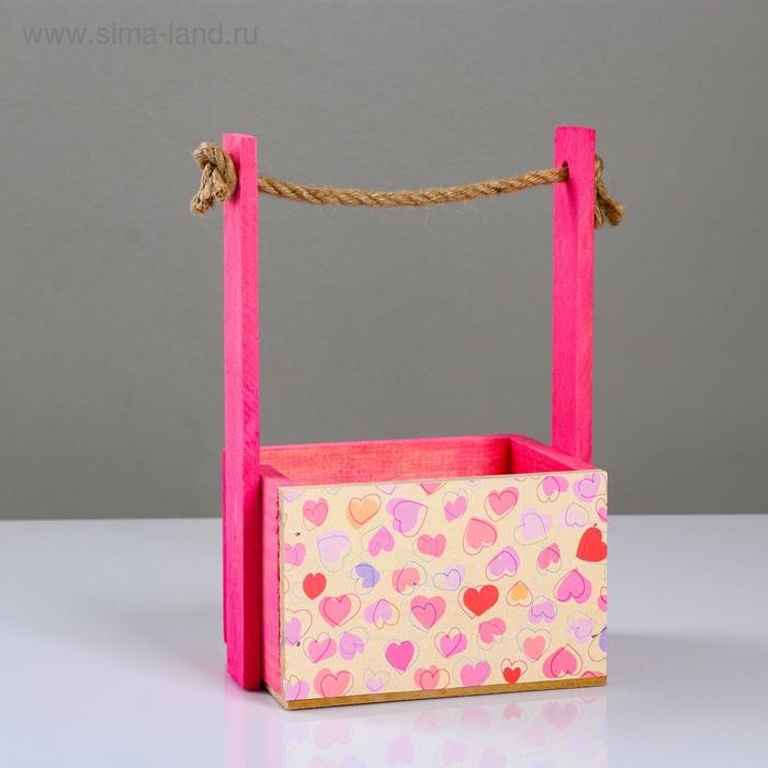 Кашпо деревянное, 15×12×8.5(25) см "Пауль и Любовь. Молодые сердца", с принтом