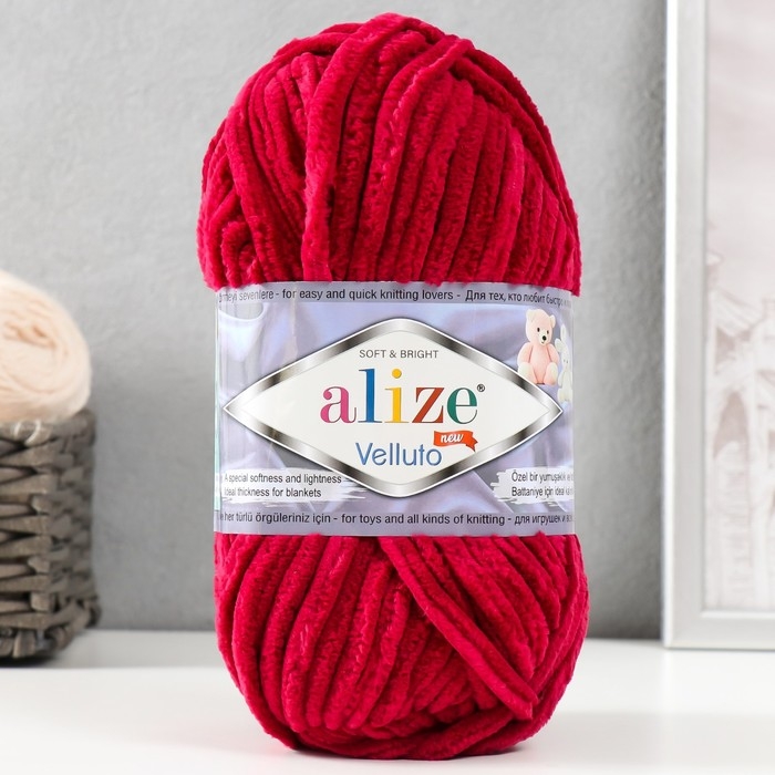 Пряжа "Velluto" 100% микрополиэстер 68м/100гр (107 вишня)