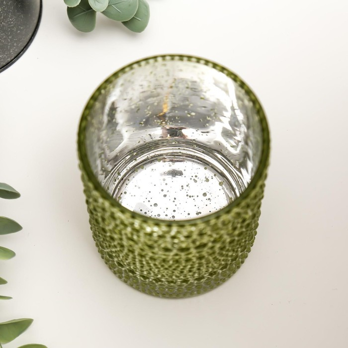 Подсвечник стекло на 1 свечу "Зеркальные пузырьки" фисташка 12,5х10х10 см