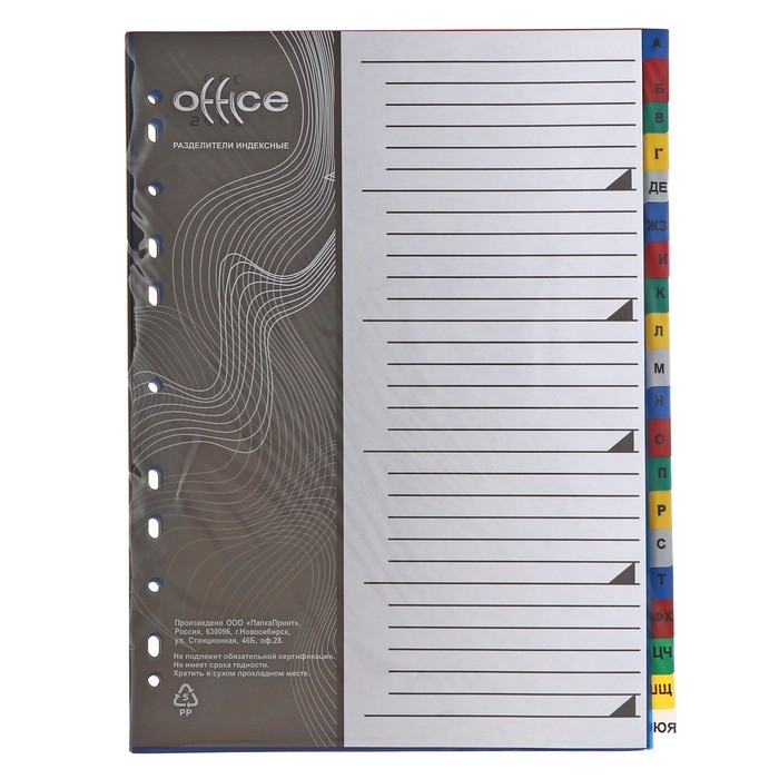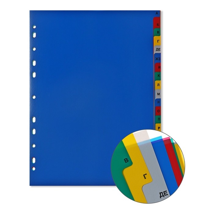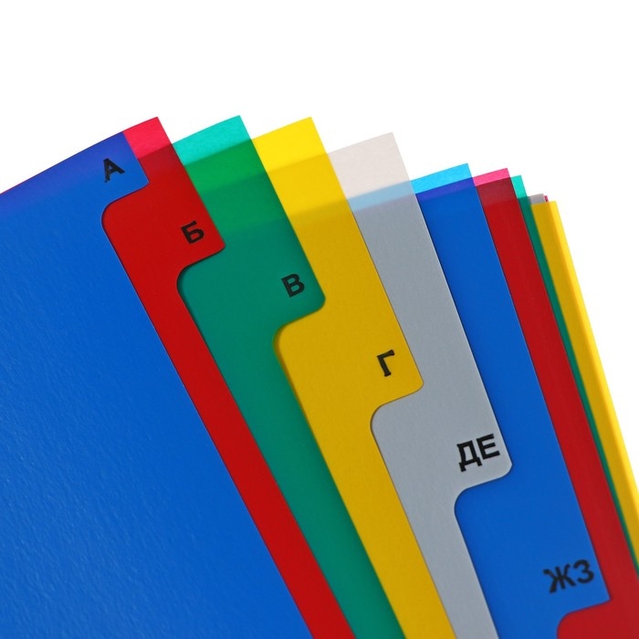 Набор разделителей листов А4 Office-2000, алфавитные А-Я, 20 листов, цветные, пластик 140 мкм