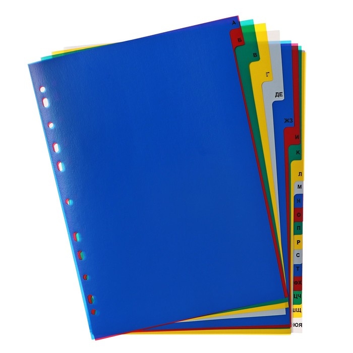 Разделители помогут Вам комфортно сортировать, архивировать и систематизировать любые документы внутри папок разного вида. Они выполнены из прочного пластика и имеют универсальную перфорацию для подшивки в папки.