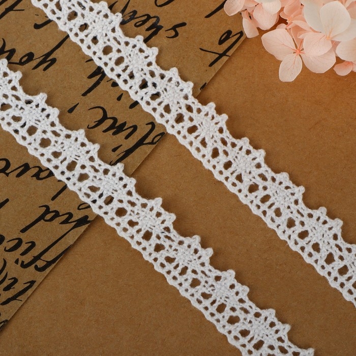 Кружево вязаное, 15 мм × 2,7 ± 0,5 м, цвет белый
