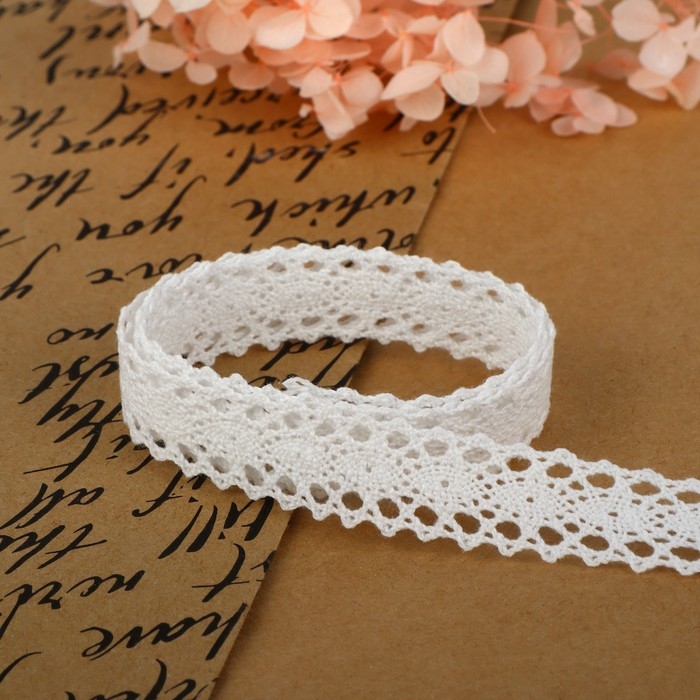 Кружево гипюровое, 15 мм × 14 ± 1 м, цвет белый