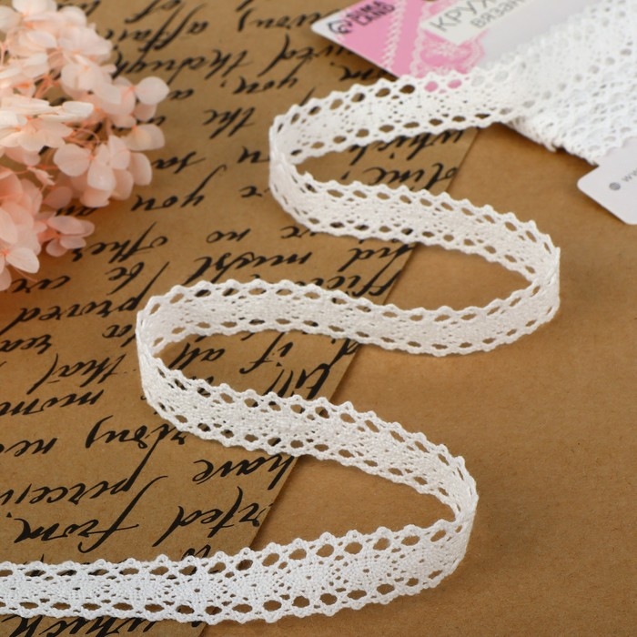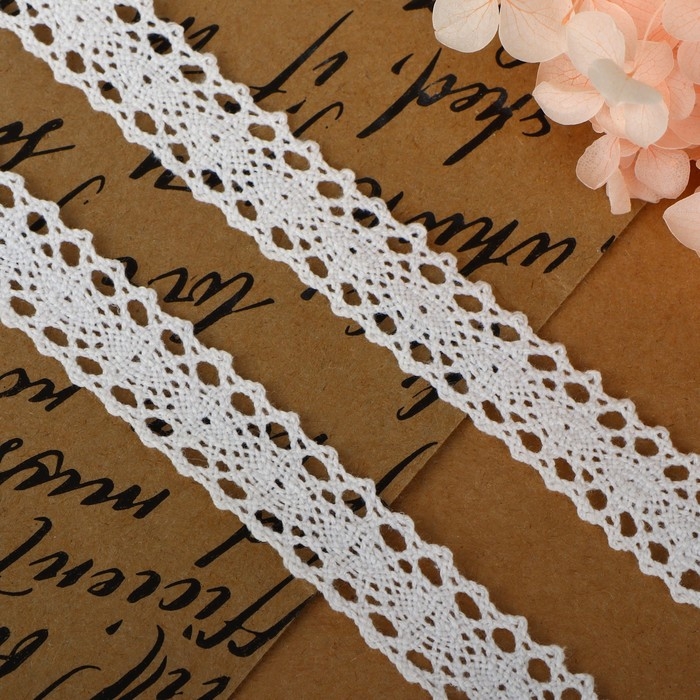 Кружево вязаное, 15 мм × 2,7 ± 0,5 м, цвет белый
