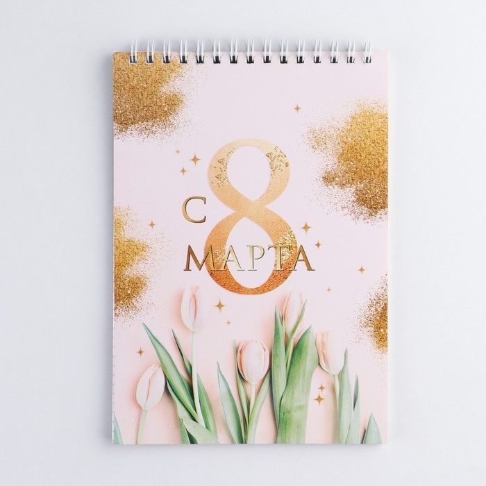 Блокнот «С 8 марта золото тюльпаны», на гребне, А5, 40 листов