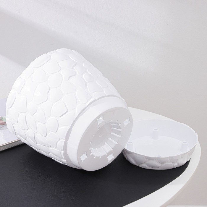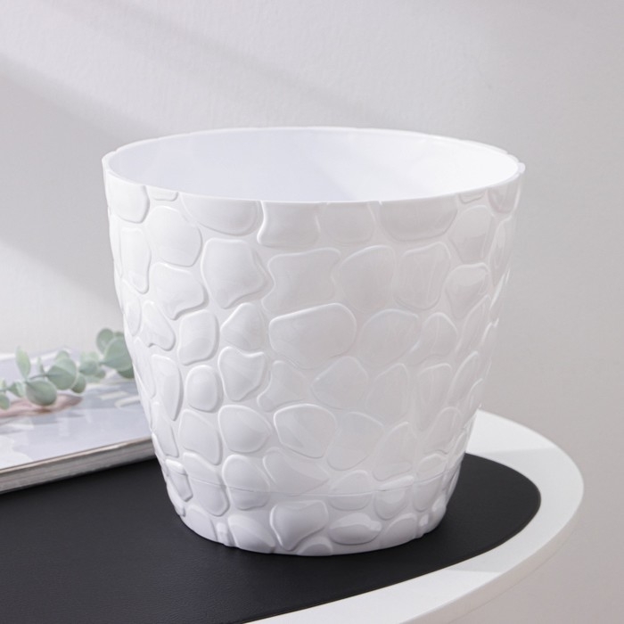Горшок для цветов с поддоном «Камешки», 5 л, пластик, белый