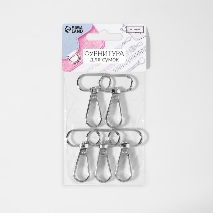 Карабин металлический, 46 × 30 мм / 25 × 2,5 мм, 5 шт, цвет серебряный