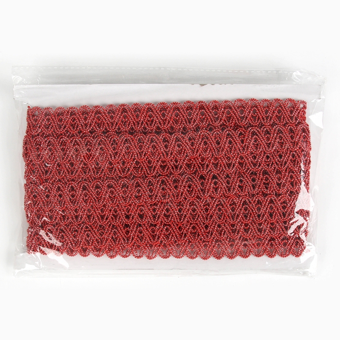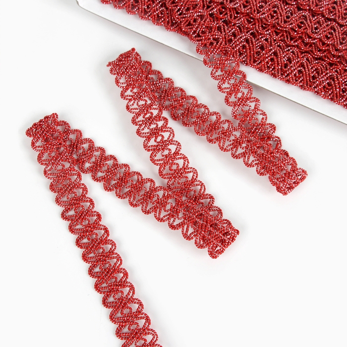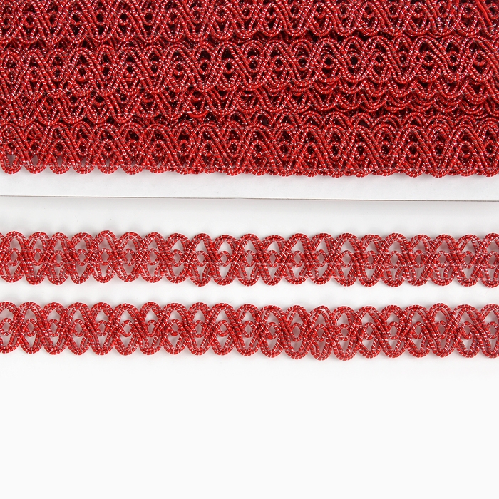 Тесьма красная овальная, с люрексом, 2 см, в рулоне 10 м