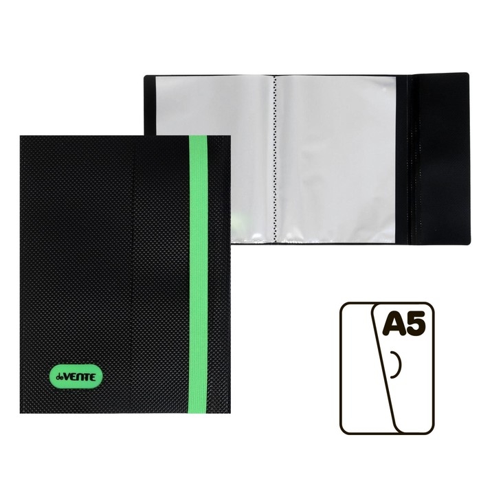Папка 20 вкладышей А5, 500 мкм, deVENTE Monochrome, фактура, резинка, чёрный/неоновый зелёный