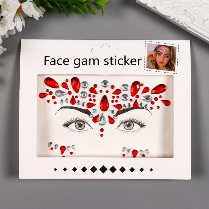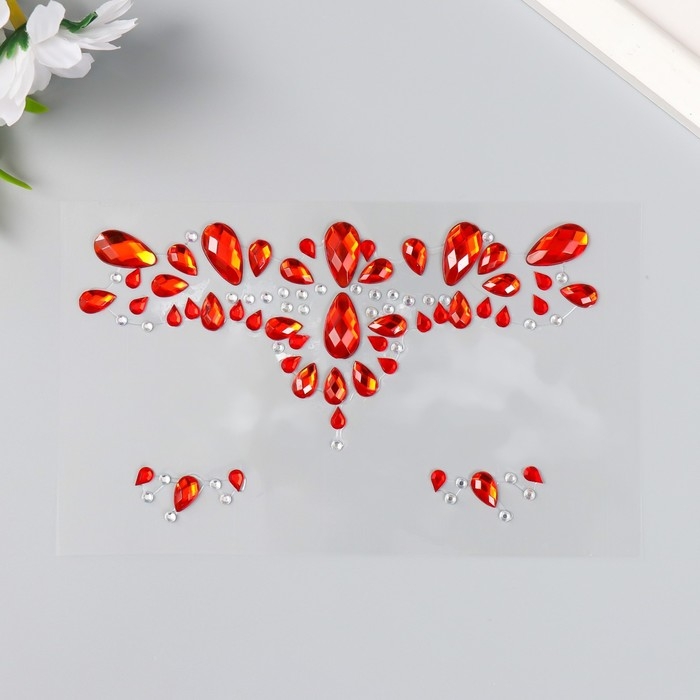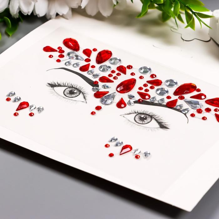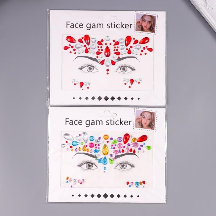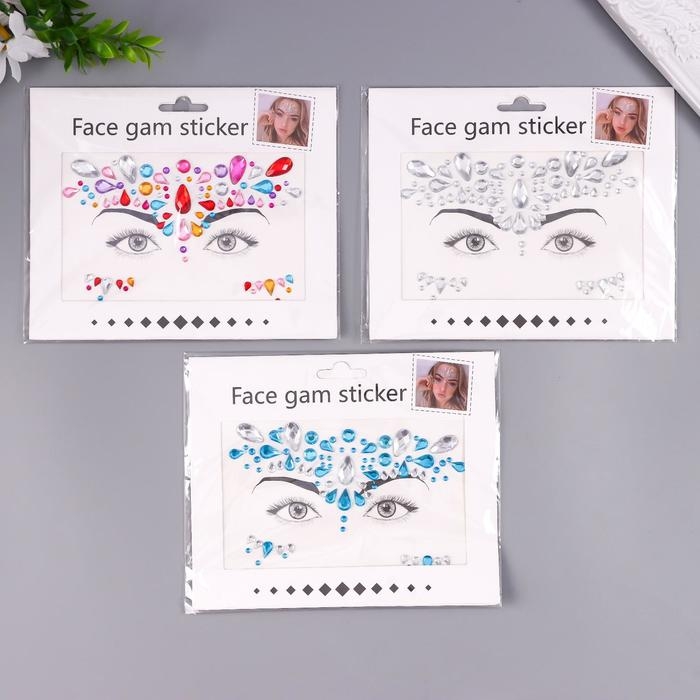 Наклейка пластик на лицо стразы "Узоры" МИКС 14,5х17,5 см
