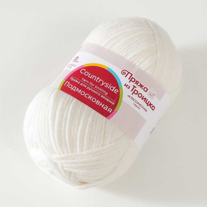 Пряжа "Подмосковная" 50% шерсть, 50% акрил 250м/100гр (01, белый)