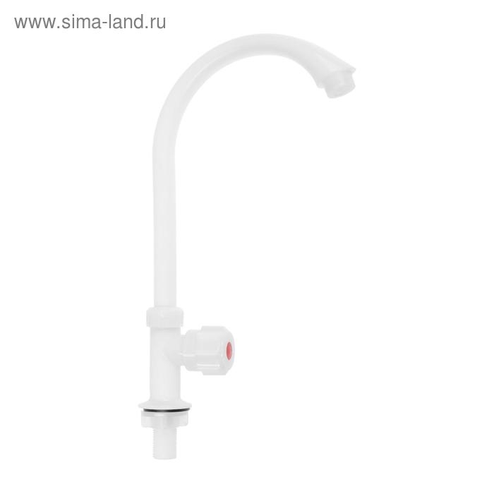 Кран на одну воду ZEIN Z2019, круглая ручка, пластик, высокий R-образный излив, белый