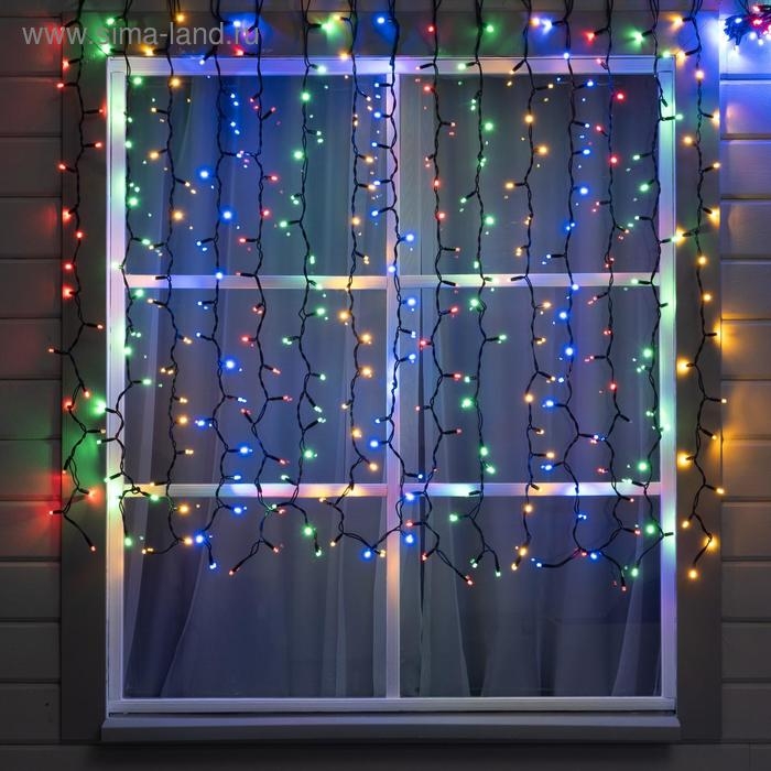 Гирлянда «Бахрома» 3 × 0.6 м, IP44, УМС, тёмная нить, 160 SMD-LED, свечение мульти, 220 В