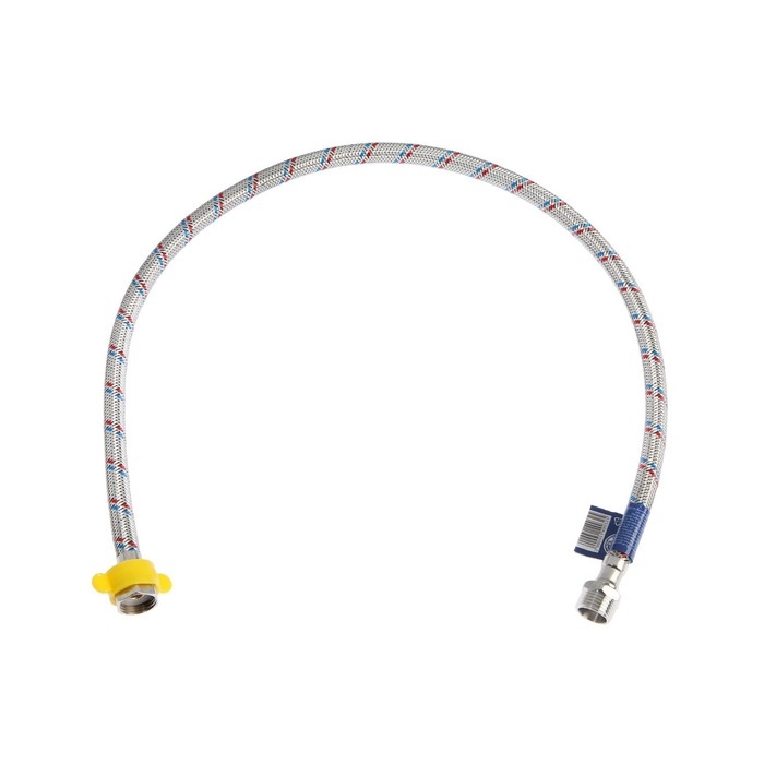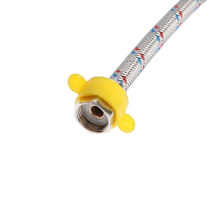 Один конец у подводки оснащен гайкой, а другой — штуцером, что обеспечивает универсальность в установке.
