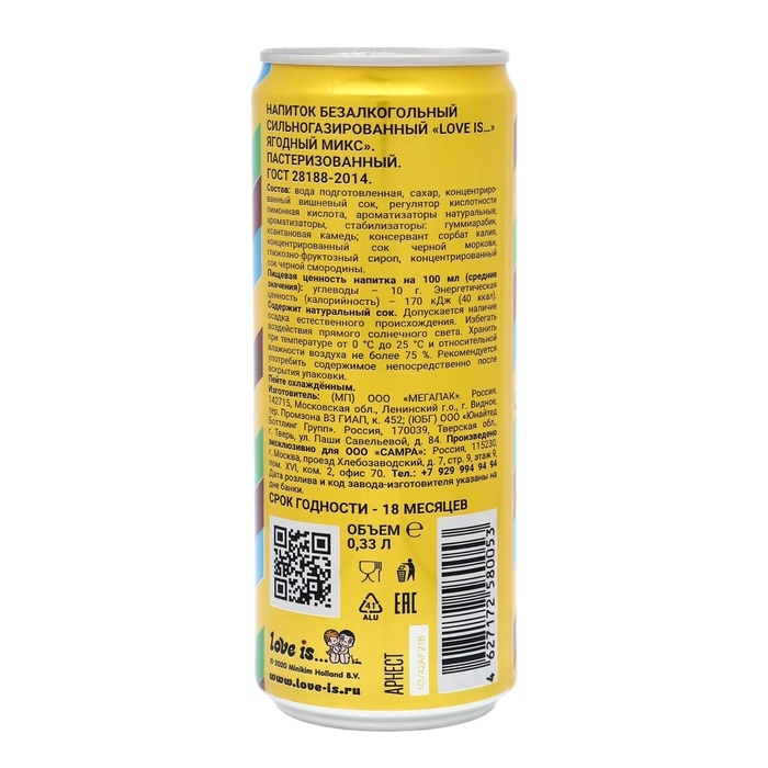 Газированный напиток со вкусом Ягодный микс от производителя Love is — это сладкая и ароматная вода с ярко выраженным вкусом ягод, который подчеркивают цитрусовые ноты. Газировка замечательно утоляет чувство жажды в жаркий летний день. Напиток придется по вкусу и взрослым, и детям. Маленькую банку с газировкой удобно взять с собой на учебу или работу. Пить ее лучше охлажденной.