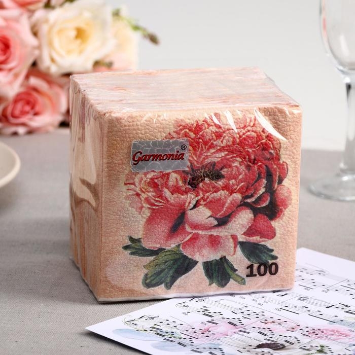 Салфетки бумажные Гармония цвета Пионы, 100 листов