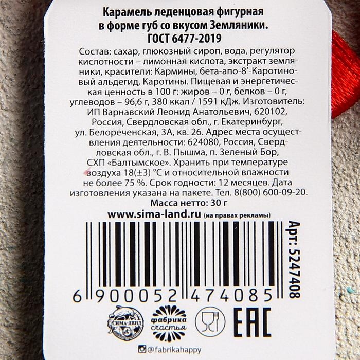 Леденец на палочке «Меняю леденец на поцелуй», со вкусом земляники, 30 г.