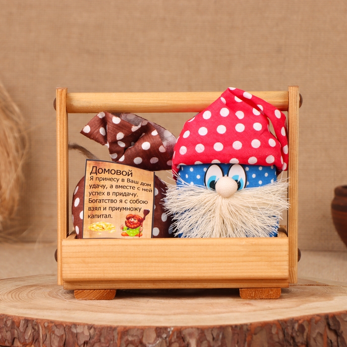 Оберег - домовой "Васёк в ящике", 15 х 16 см, микс