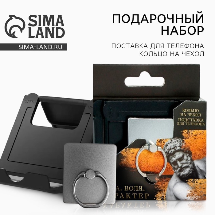 Набор «Сила. Воля. Характер»: подставка для телефона и кольцо на чехол