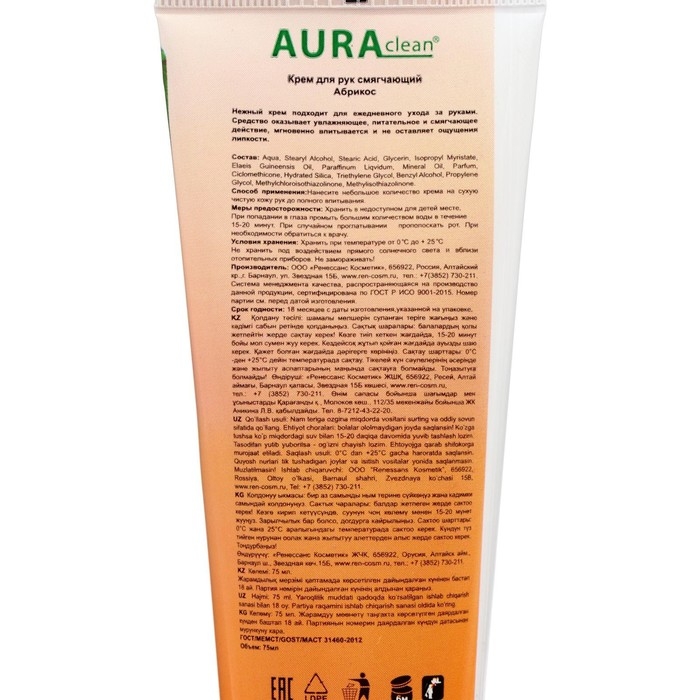 Крем для рук "Аура", смягчающий, абрикос, 75 мл