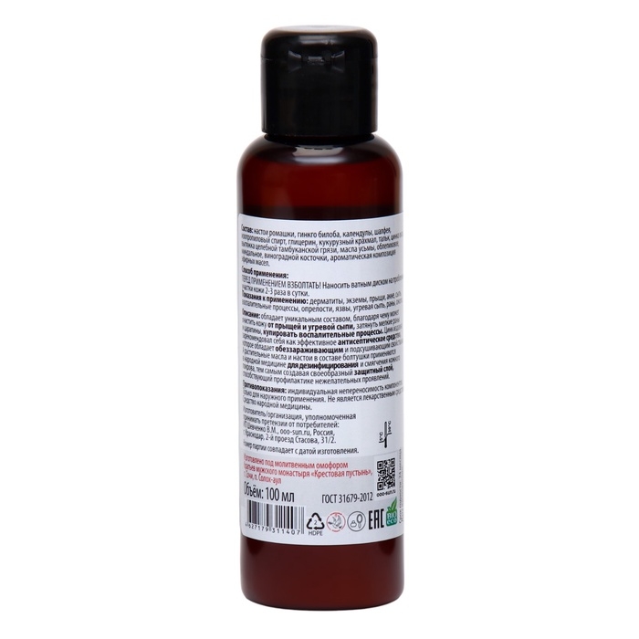 Монастырская болтушка с цинком от прыщей, 100 мл