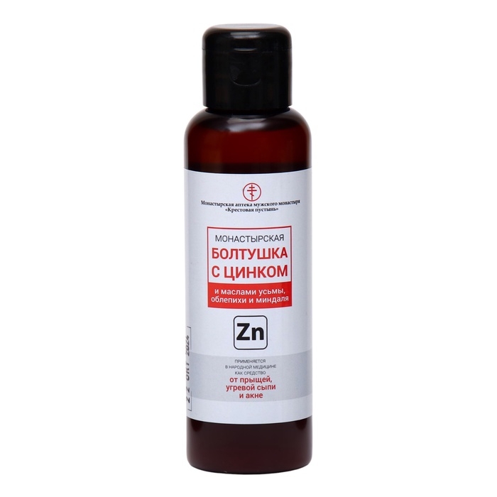 Монастырская болтушка с цинком обладает уникальным составом, благодаря чему может очистить кожу от прыщей и угревой сыпи, затянуть мелкие раны и царапины, купировать воспалительные процессы. Цинк издавна зарекомендовал себя как эффективное антисептическое средство, которое обладает обеззараживающим и подсушивающим свойствами. А растительные масла и настои в составе болтушки применяются в народной медицине для дезинфицирования и смягчения кожного покрова, тем самым создавая своеобразный защитный слой, что способствует профилактике нежелательных проявлений.