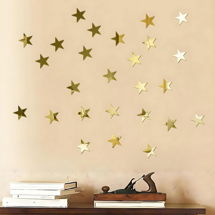 Добавьте сияния и роскоши в ваш интерьер с этим великолепным набором золотых зеркальных наклеек в форме звёздочек! Комплект включает 50 элементов размером 5x5 см, изготовленных из высококачественного акрила. Каждая наклейка имеет золотистую зеркальную поверхность, которая отражает свет и придает декору дополнительную яркость и глубину.