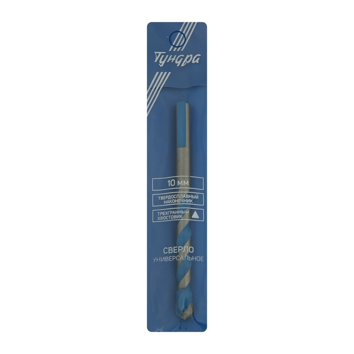 Сверло универсальное ТУНДРА, твердосплавный наконечник, трехгранный хвостовик, 10 х 115 мм