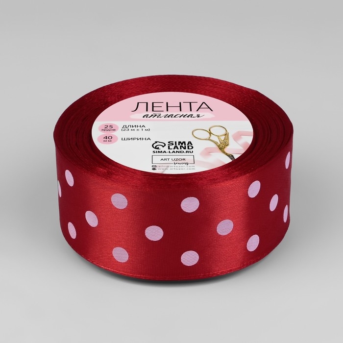 Лента атласная «Горошек», 40 мм × 23 ± 1 м, цвет красный №026