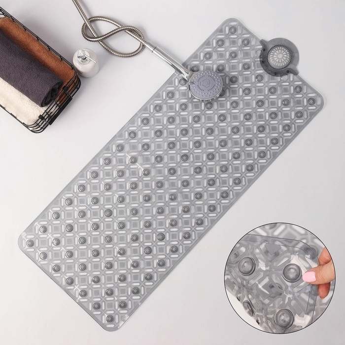 Коврик противоскользящий в ванну на присосках Доляна «Рельеф»,37×88 см, цвет МИКС