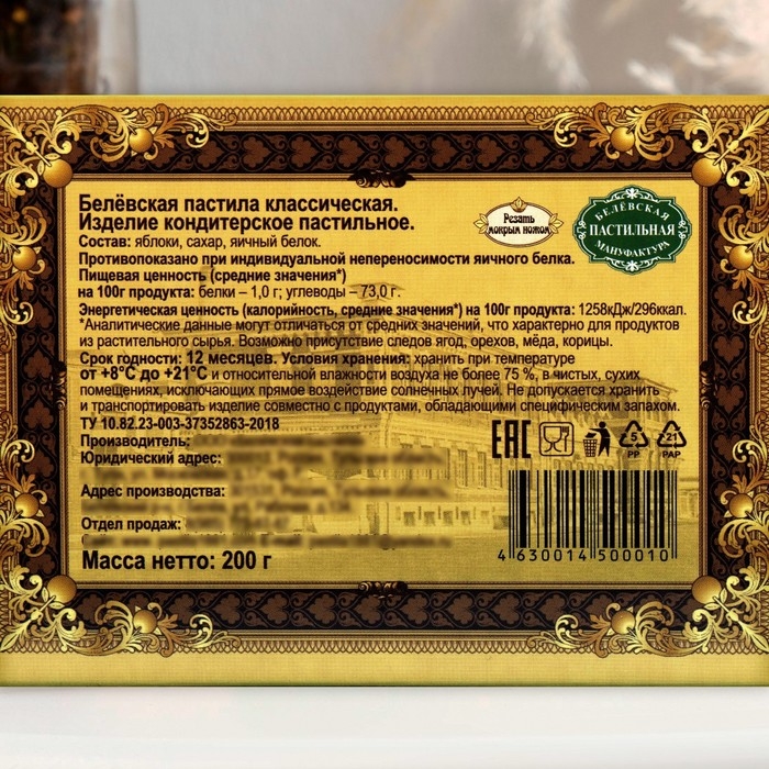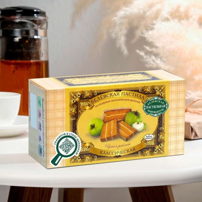 Классическая белёвская пастила – это незабываемое лакомство, созданное с домашней теплотой и любовью. Производство пастилы – ручное: сладость готовится по старинному традиционному рецепту 19 века, который не менялся с самого его изобретения.