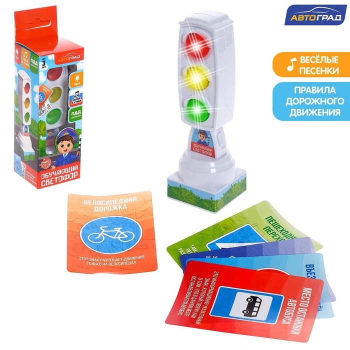 Светофор «Большая дорога», обучающие карточки, русский чип, свет, звук