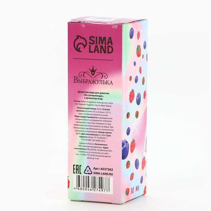 Душистая вода для девочек «Ты суперзвезда» с ароматом ягод отлично подойдёт в качестве первого парфюма малышки. Аромат сладкий, лёгкий и нежный, не слишком насыщенный — как раз для маленькой леди.