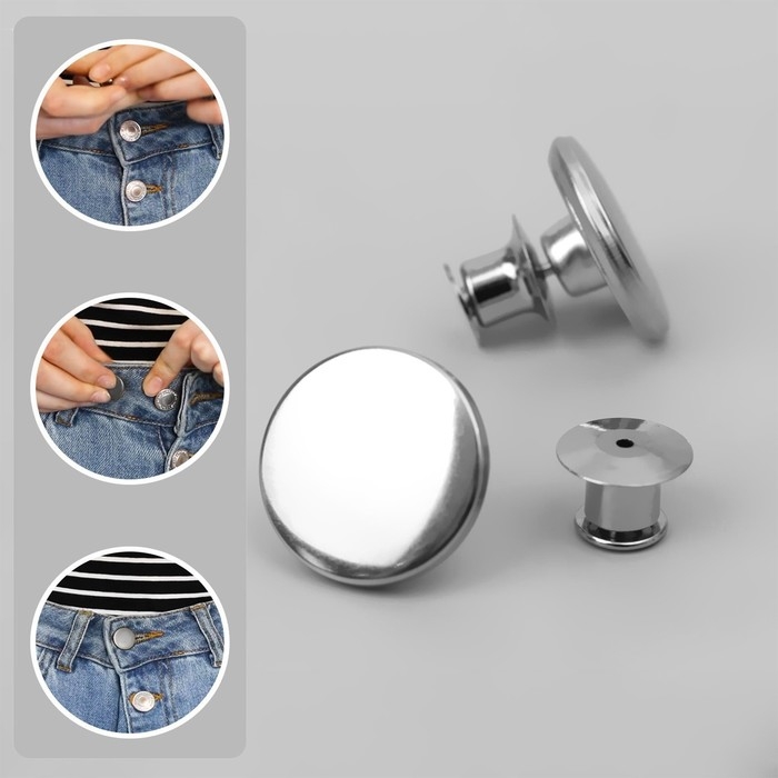 Пуговицы для сужения пояса, 17 мм, 2 шт, цвет серебряный