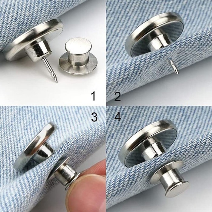 Надёжная и прочная регулируемая пуговица не требует пришивания. Пуговица на прокол поможет быстро и аккуратно откорректировать объём пояса брюк, юбок, шорт. Пуговица идеально подходит для тех, кто немного теряет или набирает вес, и не хочет тратить деньги на покупку новой одежды. А также пригодится, если внезапно отлетела пуговица.