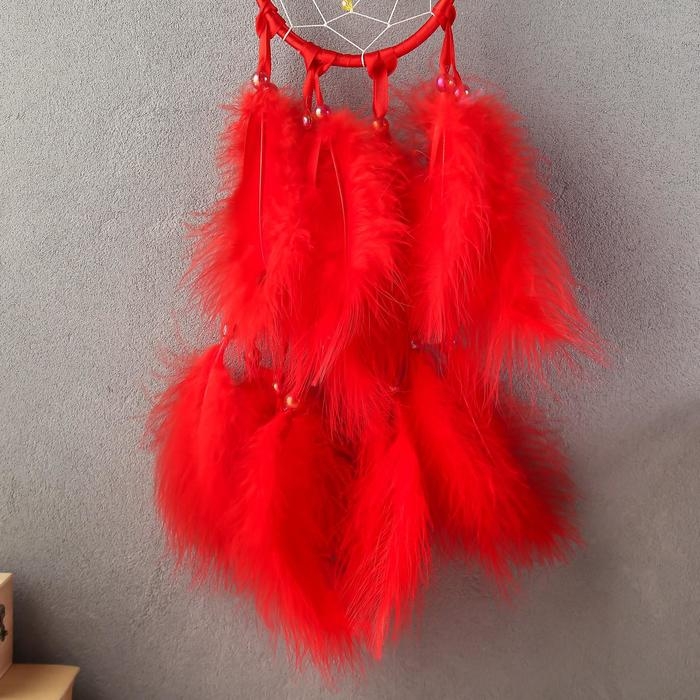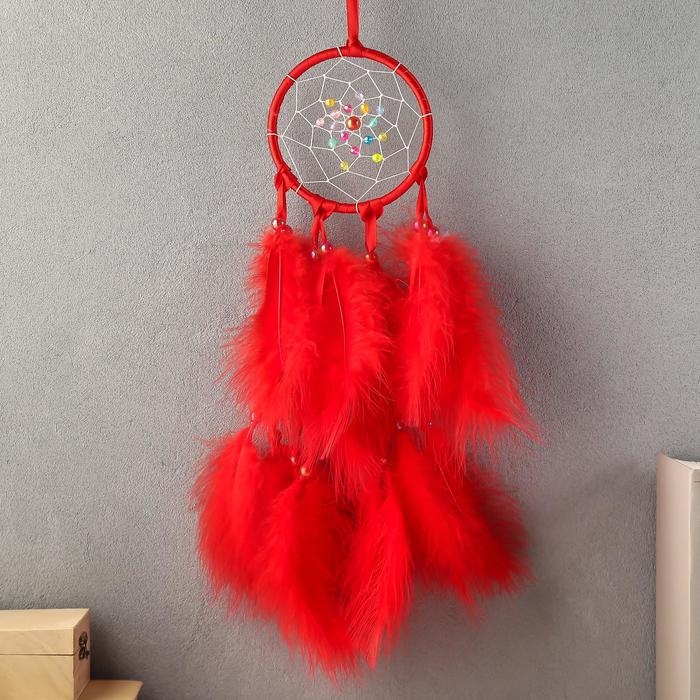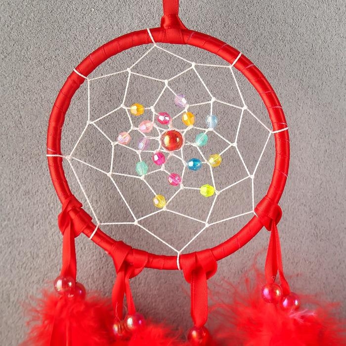 Ловец снов "Паутинка с жемчужинами" d=11 см красный 40 см