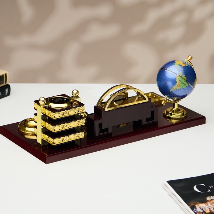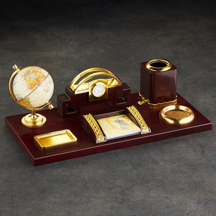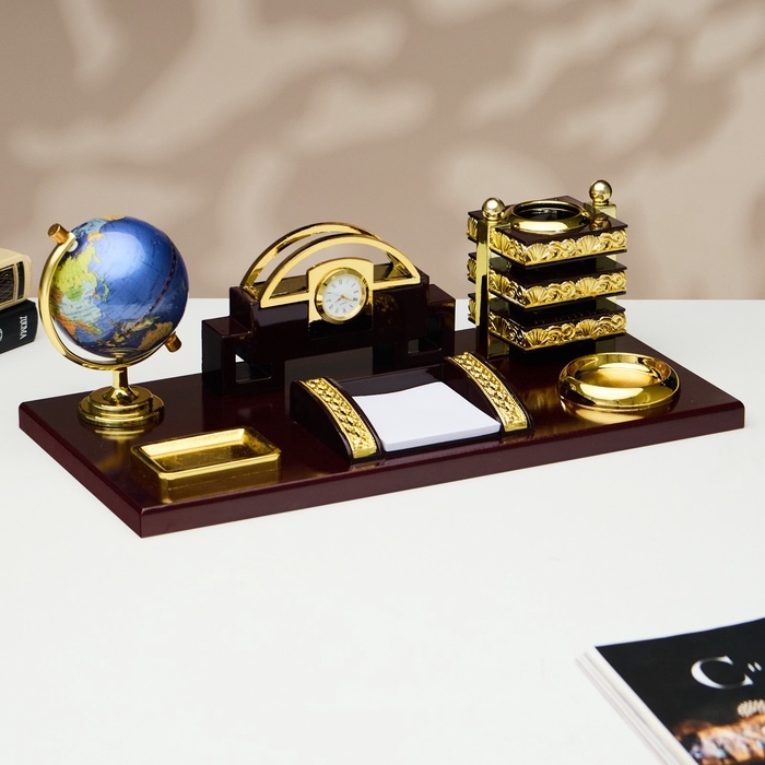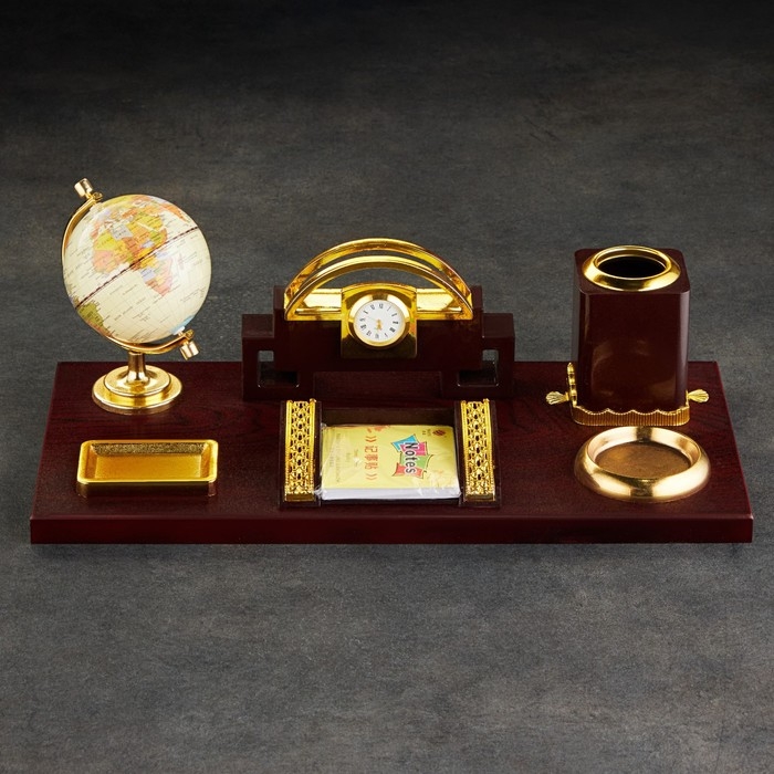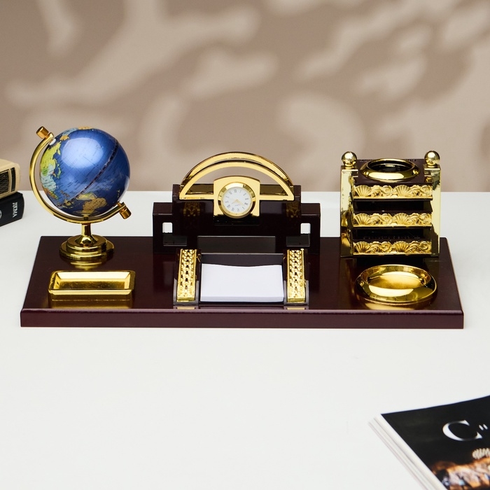 Набор настольный 6в1 (блок д/бумаг, подст. д/печати, карандашница, часы, визитница,глобус)