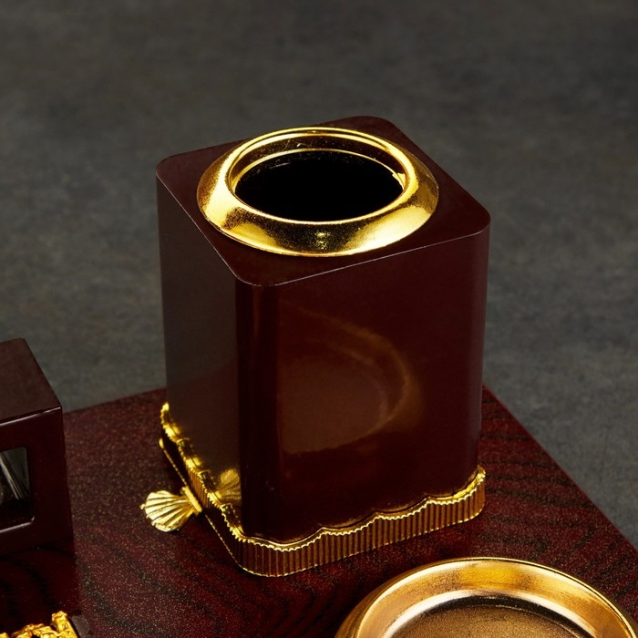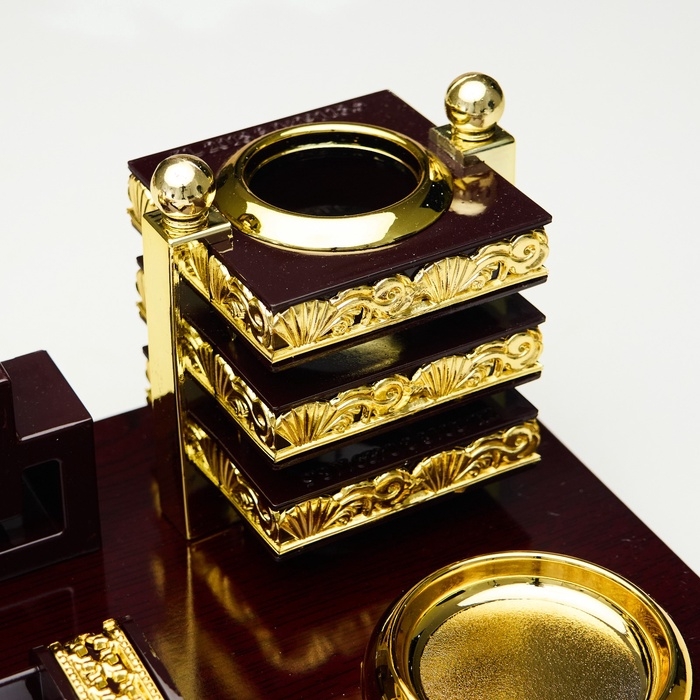 Компактный настольный набор поможет избежать хаоса на рабочем месте. Храните в нём канцелярские принадлежности или другие мелочи, чтобы правильно организовать пространство. К тому же изделие имеет минималистичный дизайн и выполнено под дерево, поэтому оно украсит собой любое место как декоративный элемент.