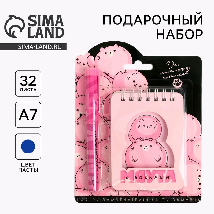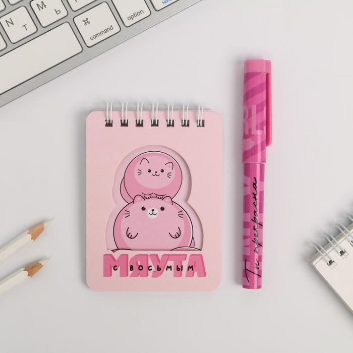 Набор «С 8 Мяута»: блокнот и ручка пластик