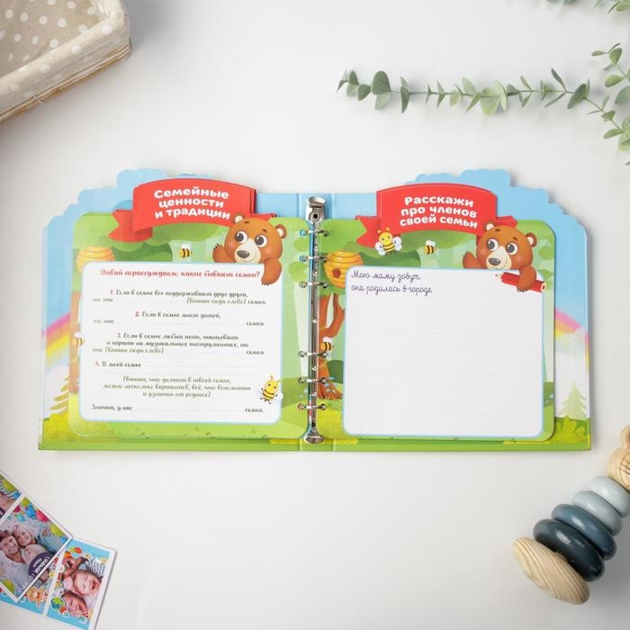 Детская родословная книга в игровой форме содержит увлекательные задания, которые познакомят ребенка с семейными ценностями.