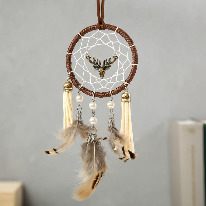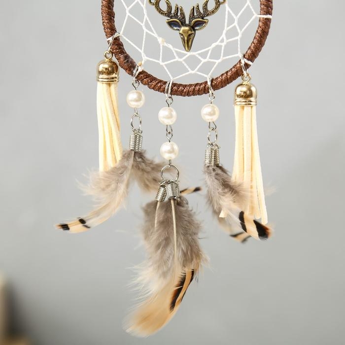 Ловец снов "Паутинка с оленем" с кисточками 18х7 см