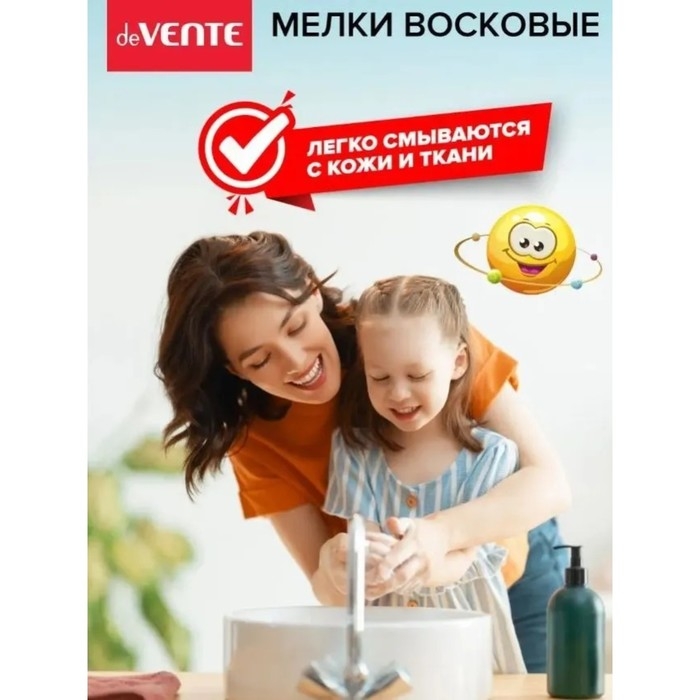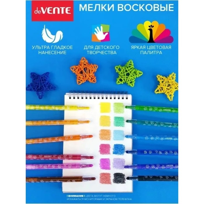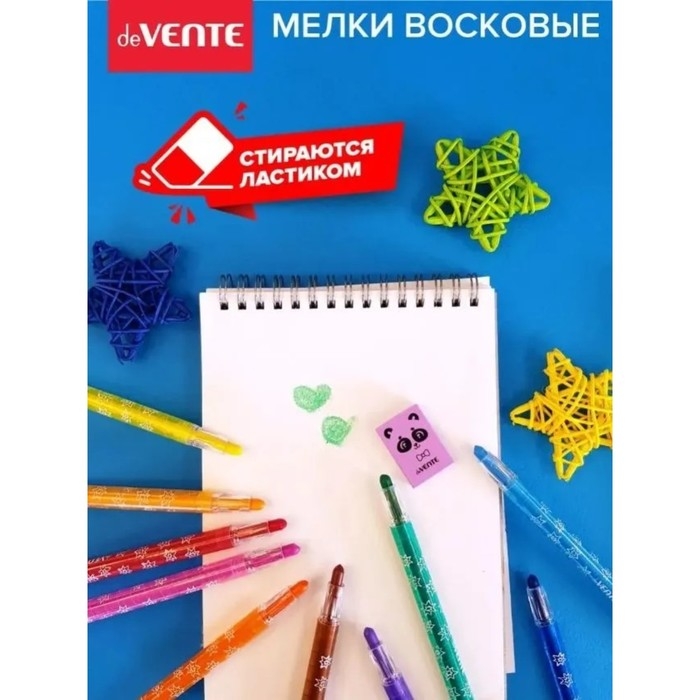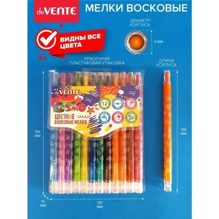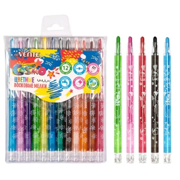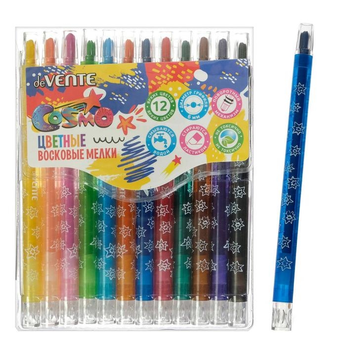 Мелки восковые 12 цветов deVENTE Cosmo, с поворотным механизмом, пластиковый блок на липучке
