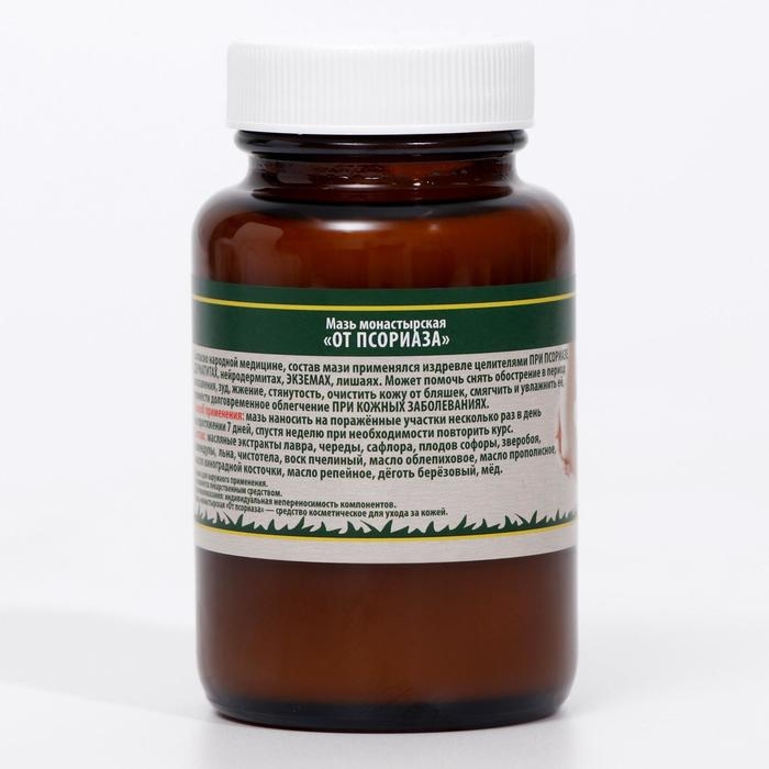Мазь «Монастырская от псориаза» кавказский целитель, стекло, 100 мл