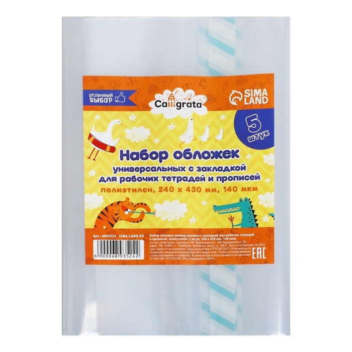Набор обложек ПЭ 5 штук, 240 х 430 мм, 140 мкм, для прописей и рабочих тетрадей, универсальная, с закладкой, МИКС
