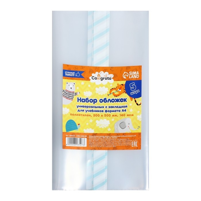 Набор обложек ПЭ 5 штук, 300 х 500 мм, 140 мкм, для учебников формата А4, универсальная, с закладкой, МИКС